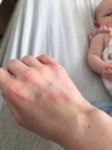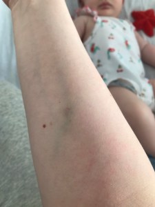 A doctor came in and had a chat. It was pretty honest that things were touch and go and challenging due to my allergies to certain antibiotics which limited what could be used to fight the infection. It was a good thing I had called out of hour and not waited till morning as I probably would not have woken up. This was pretty sobering, I was feeling absolutely horrible and when I asked what I could do the answer was: “Just hold your baby”. The very thing that if I had prioritised just like I was craving would have saved me this horrible and scary experience. This very first night was painful and I focused all I could on the warm little person, feeling her breathing, brushing her soft cheeks and kissing her head, holding on to her and for her. For the next few days I was taken care of by amazing nurses and doctors, Peyton was a little trouper and she did great, she smiled for everyone who met her. I was exhausted, hooked on IVs, trying to breastfeed with a cannula on was an interesting experience and said cannula had to be put on a few times after Peyton took a special interest in it (ouch!). I missed the kids at home though I was grateful that Simon was home and on holiday so he could take care of them. I did my best to enjoy the day to day and snuggles with Peyton, if it weren’t for the very scary infection situation I would have to say it was also a good resetting experience of enjoying my baby and reminding myself that my wellbeing mattered.