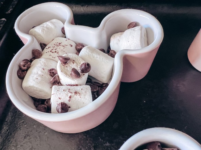 All you need are your usual crackers or biscuits for s’mores, marshmallows and chocolate chips. Preheat the oven to about 200C, put a layer of chocolate chips in a baking tray, then a layer of marshmallows and a generous sprinkle of chocolate chips on top, pop in the oven for about 8 minutes, check on regularly not to burn and when it looks nice and gooey, you can take out and enjoy!
